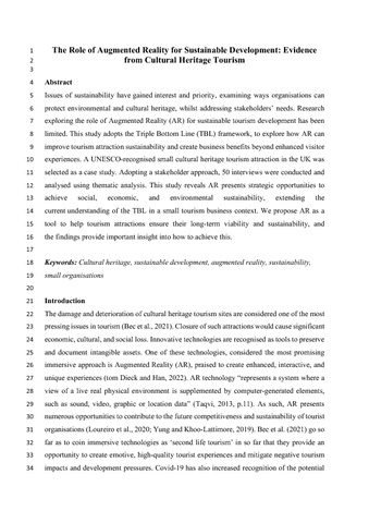 The role of augmented reality for sustainable development: Evidence from cultural heritage tourism.