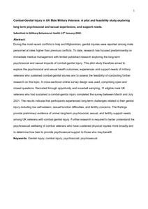 Combat-genital injury in UK male military veterans: a pilot and feasibility study exploring long-term psychosocial and sexual experiences and support needs
