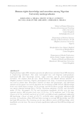 Human rights knowledge and assertion among Nigerian University undergraduates.