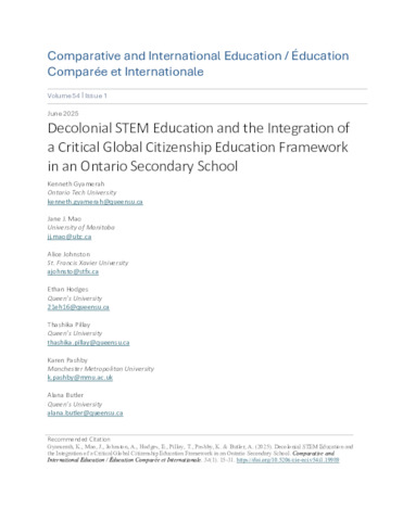 Decolonial STEM Education and the Integration of a Critical Global Citizenship Education Framework in an Ontario Secondary School.