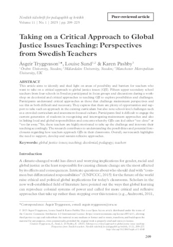 Taking on a Critical Approach to Global Justice Issues Teaching: Perspectives from Swedish Teachers.