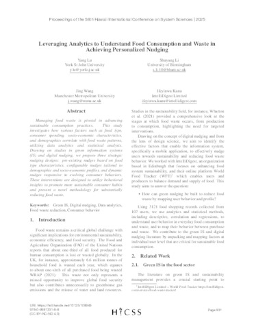 Leveraging Analytics to Understand Food Consumption and Waste in Achieving Personalized Nudging.