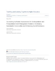 Radcliffe, Karen ORCID logoORCID: https://orcid.org/0009-0003-2533-5237 and Priest, Janine (2025) Co-creating authentic assessments for undergraduate and postgraduate event management students: developing sustainable communities and enhancing social awareness. Teaching and Learning Together in Higher Education (TLTHE), 1 (46). 3. ISSN 2381-4268
