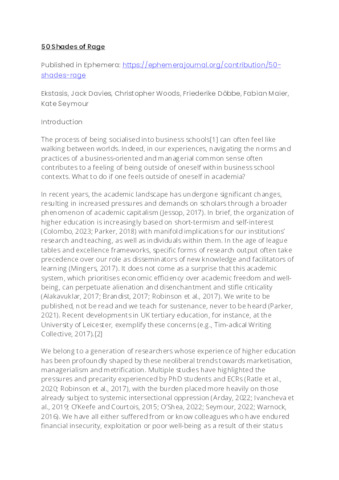 Seymour, Kate ORCID logoORCID: https://orcid.org/0000-0001-6783-1093, Davies, Jack, Friederike, Döbbe, Woods, Christopher, Maier, Fabian and Ekstasis (2024) Fifty Shades of Rage. Ephemera: theory and politics in organization. ISSN 1473-2866