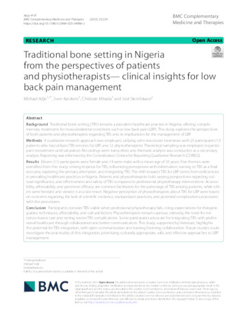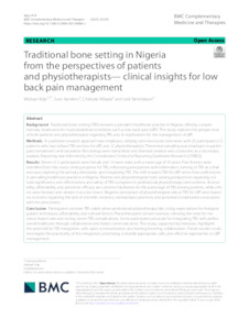 Traditional bone setting in Nigeria from the perspectives of patients and physiotherapists— clinical insights for low back pain management.