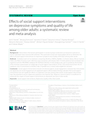Effects of social support interventions on depressive symptoms and quality of life among older adults: a systematic review and meta-analysis.