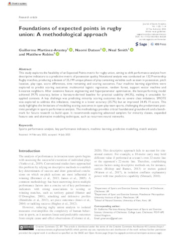 Foundations of Expected Points in Rugby Union: A Methodological Approach.