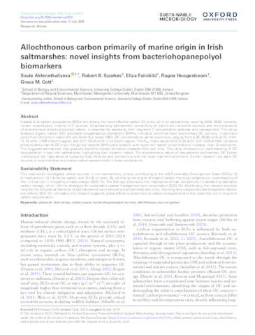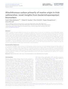 Allochthonous carbon primarily of marine origin in Irish saltmarshes: Novel insights from bacteriohopanepolyol biomarkers.