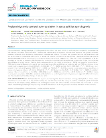 Regional dynamic cerebral autoregulation in acute poikilocapnic hypoxia.