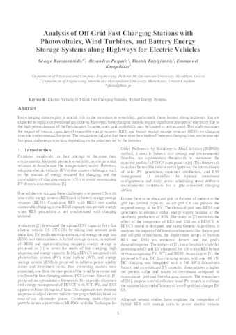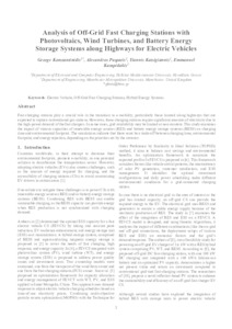 Analysis of off-grid fast charging stations with photovoltaics, wind turbines, and battery energy storage systems along highways for electric vehicles.