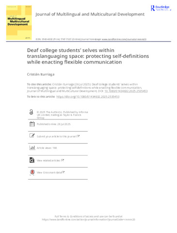 Deaf college students’ selves within translanguaging space: protecting self-definitions while enacting flexible communication.