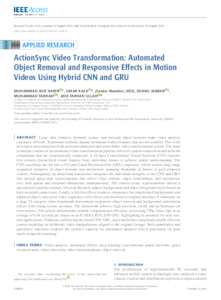 Habib, Muhammad Asif ORCID logoORCID: https://orcid.org/0000-0002-2675-1975, Raza, Umar ORCID logoORCID: https://orcid.org/0000-0002-9810-1285, Jabbar, Sohail ORCID logoORCID: https://orcid.org/0009-0007-5805-0659, Farhan, Muhammad ORCID logoORCID: https://orcid.org/0000-0002-3649-5717 and Ullah, Farhan ORCID logoORCID: https://orcid.org/0000-0002-1030-1275 (2025) ActionSync Video Transformation: Automated Object Removal and Responsive Effects in Motion Videos using Hybrid CNN and GRU. IEEE Access, 13. pp. 149834-149852.