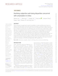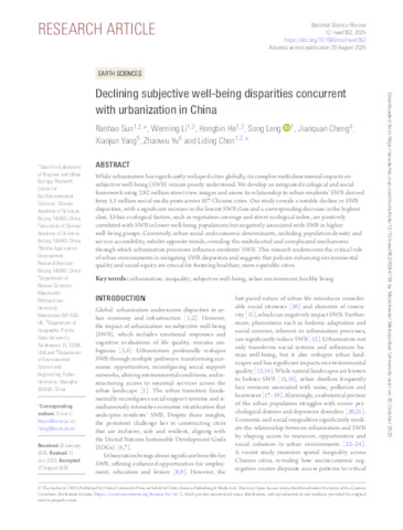 While urbanization has significantly reshaped cities globally, its complex multidimensional impacts on subjective well-being (SWB) remain poorly understood. We develop an integrated ecological and social framework using 2.92 million street view images and assess its relationship with urban residents’ SWB derived from 5.3 million social media posts across 107 Chinese cities. Our study reveals a notable decline in SWB disparities, with a significant increase in the lowest SWB class and a corresponding decrease in the highest class. Urban ecological factors, such as vegetation coverage and street ecological index, are positively correlated with SWB in lower well-being populations but negatively associated with SWB in higher well-being groups. Conversely, urban social and economic determinants, including population density and service accessibility, exhibit opposite trends, revealing the multifaceted and complicated mechanisms through which urbanization processes influence residents' SWB. This research underscores the critical role of urban environments in mitigating SWB disparities and suggests that policies enhancing environmental quality and social equity are crucial for fostering healthier, more equitable cities.