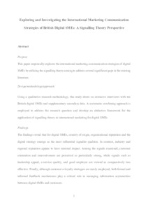 Exploring and investigating the international marketing communication strategies of British digital SMEs: a signalling theory perspective.