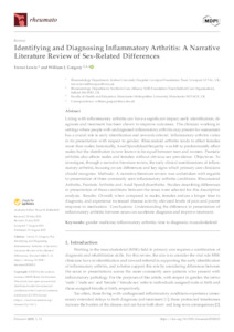 Lewis, Trevor and Gregory, William J ORCID logoORCID: https://orcid.org/0000-0002-1186-5806 (2025) Identifying and Diagnosing Inflammatory Arthritis: A Narrative Literature Review of Sex-Related Differences. Rheumato, 5 (3). p. 12. ISSN 2674-0621