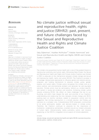 No climate justice without sexual and reproductive health, rights and justice (SRHRJ): past, present, and future challenges faced by the Sexual and Reproductive Health and Rights and Climate Justice Coalition.