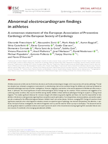Abnormal electrocardiogram findings in athletes: A consensus statement of the European Association of Preventive Cardiology of the European Society of Cardiology.