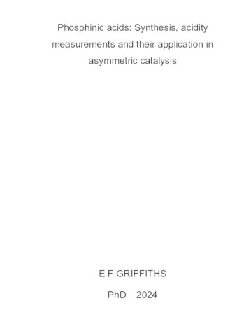 Griffiths, Emily Faye (2025) Phosphinic acids: Synthesis, acidity measurements and their application in asymmetric catalysis. Doctoral thesis (PhD), Manchester Metropolitan University.