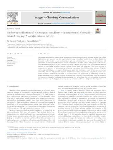 Surface modification of electrospun nanofibers via nonthermal plasma for wound healing: A comprehensive review.