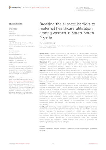 Breaking the silence: barriers to maternal healthcare utilisation among women in South-South Nigeria.