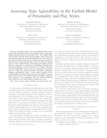 Assessing Type Agreeability in the Unified Model of Personality and Play Styles.