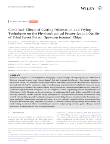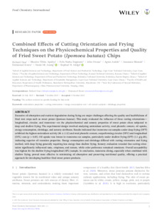 Combined Effects of Cutting Orientation and Frying Techniques on the Physicochemical Properties and Quality of Fried Sweet Potato (Ipomoea batatas) Chips.