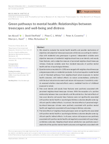 Green pathways to mental health: Relationships between treescapes and well‐being and distress.