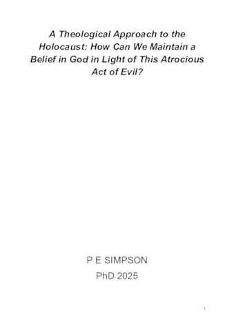 Simpson, Paige Emily (2025) A Theological Approach to the Holocaust: How can we maintain a belief in God in light of this atrocious act of evil? Doctoral thesis (PhD), Manchester Metropolitan University.