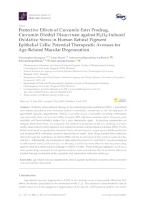 Protective effects of curcumin ester prodrug, curcumin diethyl disuccinate against H2O2-induced oxidative stress in human retinal pigment epithelial cells: Potential therapeutic avenues for age-related macular degeneration.