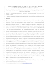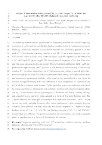 Analysis of four-point bending test for Nb, Ta, and V-doped CrYN thin films deposited by closed-field unbalanced magnetron sputtering.