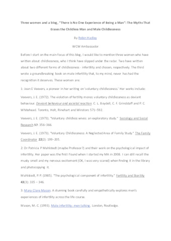 Three women and a blog, “There is No One Experience of Being a Man”: The Myths That Erases the Childless Man and Male Childlessness.