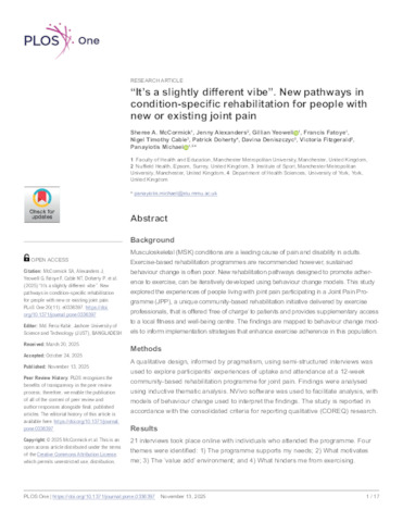 “It’s a slightly different vibe”. New pathways in condition-specific rehabilitation for people with new or existing joint pain.