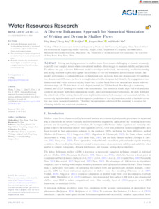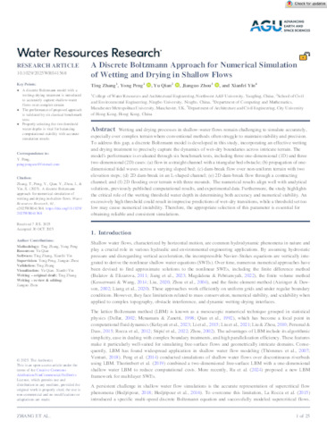 Zhang, Ting, Peng, Yonghong ORCID logoORCID: https://orcid.org/0000-0002-5508-1819, Qian, Yu, Zhou, Jianguo ORCID logoORCID: https://orcid.org/0000-0002-4262-1898 and Yin, Xianfei (2025) A Discrete Boltzmann Approach for Numerical Simulation of Wetting and Drying in Shallow Flows. Water Resources Research, 61 (11). e2025WR041568. ISSN 0043-1397